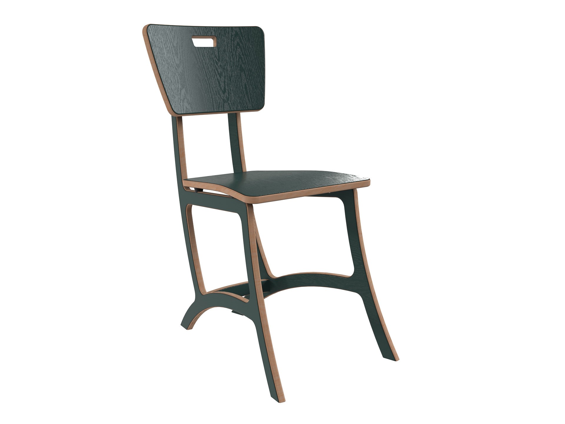 My chair utilized wood laminate on plywood to cut costs and look visually stunning